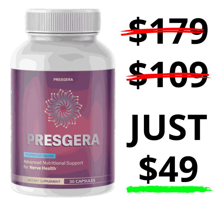 Presgera is a 100% natural supplement specifically formulated to target the root cause of neuropathic pain — the dangerous ‘pain molecule’ that damages and inflames your nerves. By neutralizing this molecule and restoring nerve health, Presgera helps reduce burning, tingling, and numbness, while regenerating damaged nerves. It promotes lasting relief, improved mobility, and overall vitality, so you can enjoy life pain-free and regain your independence.